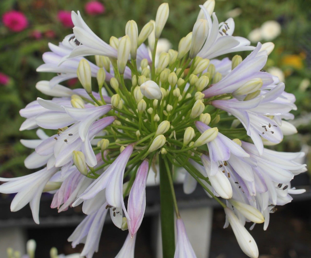 Madison ™ is an exciting new tall evergreen perennial with attractive strap-like foliage. Massed heads of bicolour mauve and white flowers with lavender edging around the petals appearing in late Spring to early Summer. Madison ™ has low seed viability making it the safer agapanthus choice. Madison ™ is grown from tissue culture to ensure uniformity and stability of flowering. The plants being offered are being grown in 75mm tubes and will be sent bare root through Australia Post. Attached are some pictures of Madison for illustrative purposes.