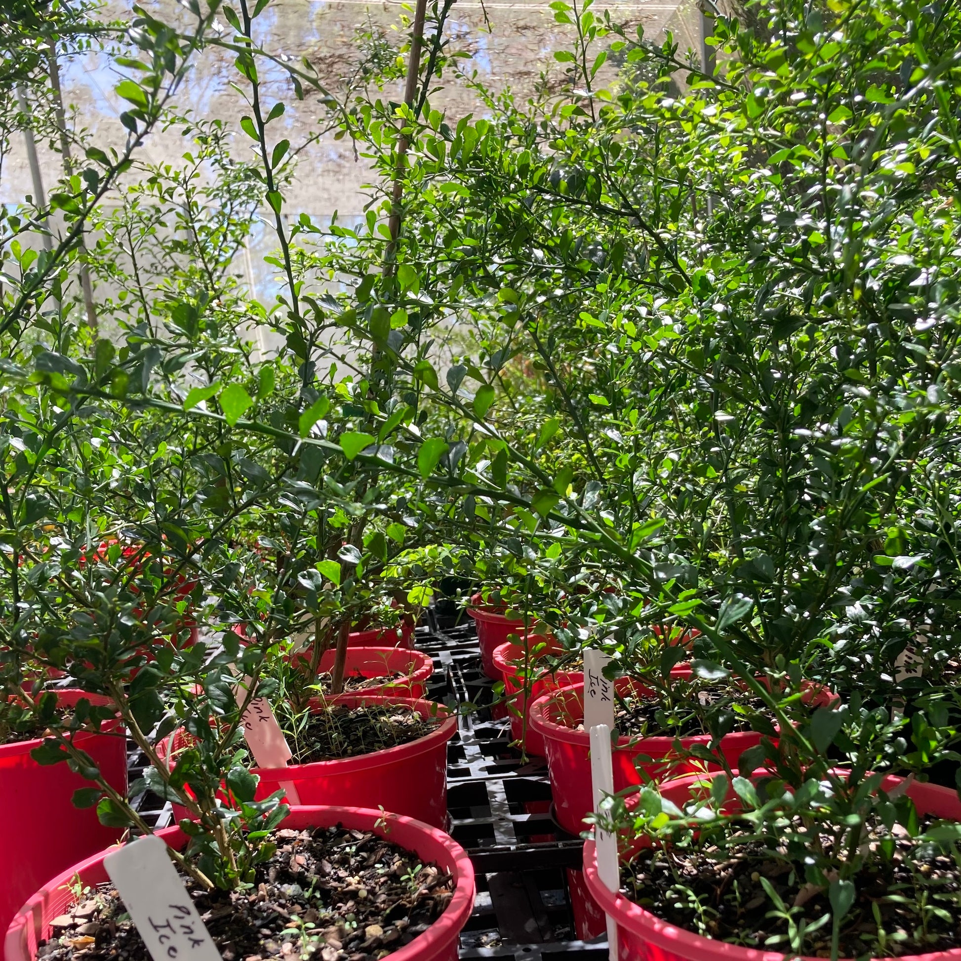 Finger Lime “Pink Ice" is a selected popular variety with pink skinned fruit with pink to clear pearls of jucie inside. Slightly bitter flavour similar to juicy pink grapefruit, makes it perfect for a range of cocktails and drinks. A great variety for growing in containers. Water thoroughly in spring and summer, especially on hot days and particularly when the fruit is being set. Prefers full sun but in a protected position in well drained soil or potting mix if grown in a container. These plants are cutting grown and not seed grown and are true to type. Seed grown will not be true to type. Grown in a 200mm pot. Fruit size is 60 to 90mm long. If grown in containers they may grow to 1.8m in height. Pick up only.