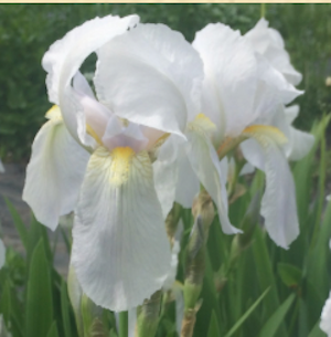 Iris Florentina, also commonly known as Florentine Iris or Orris Root. Orris Root Powder is used as a fixative with essential oils when making potpourri and the oil as a fixative in the manufacture of perfume. It flowers in spring. The flowers are white with blue veins, violet scented and the outer divisions fringed with yellow. The plant likes full sun in deep, rich, well-drained soil, but will grow almost everywhere. Drought tolerant. The price is for one small to medium sized plant.