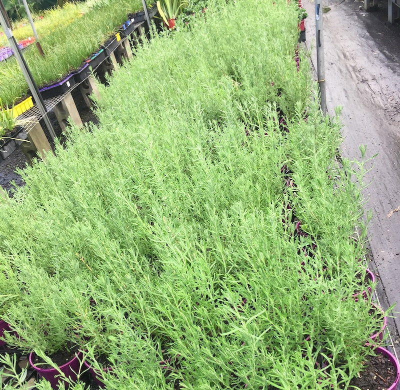 Lavenduloa stoechas is a small vigorous shrub grown for its highly aromatic narrow greyish green toothed leaves and dense spikes of fragrant deep purple blue flowers that are topped with purple bracts. It will tolerate hot and humid conditions and is a good performer in south east Queensland. Ideal for pots, gardens and can be clipped into a neat low level hedge. Use for dried flowers in pot pourri and sachets. Prefers well drained gardens in an open sunny position. Tolerates dry spells once established. Grows to a height of 0.5 to 1m. These plants are in 140mm pots. Order and pick up only - no mail order deliveries.