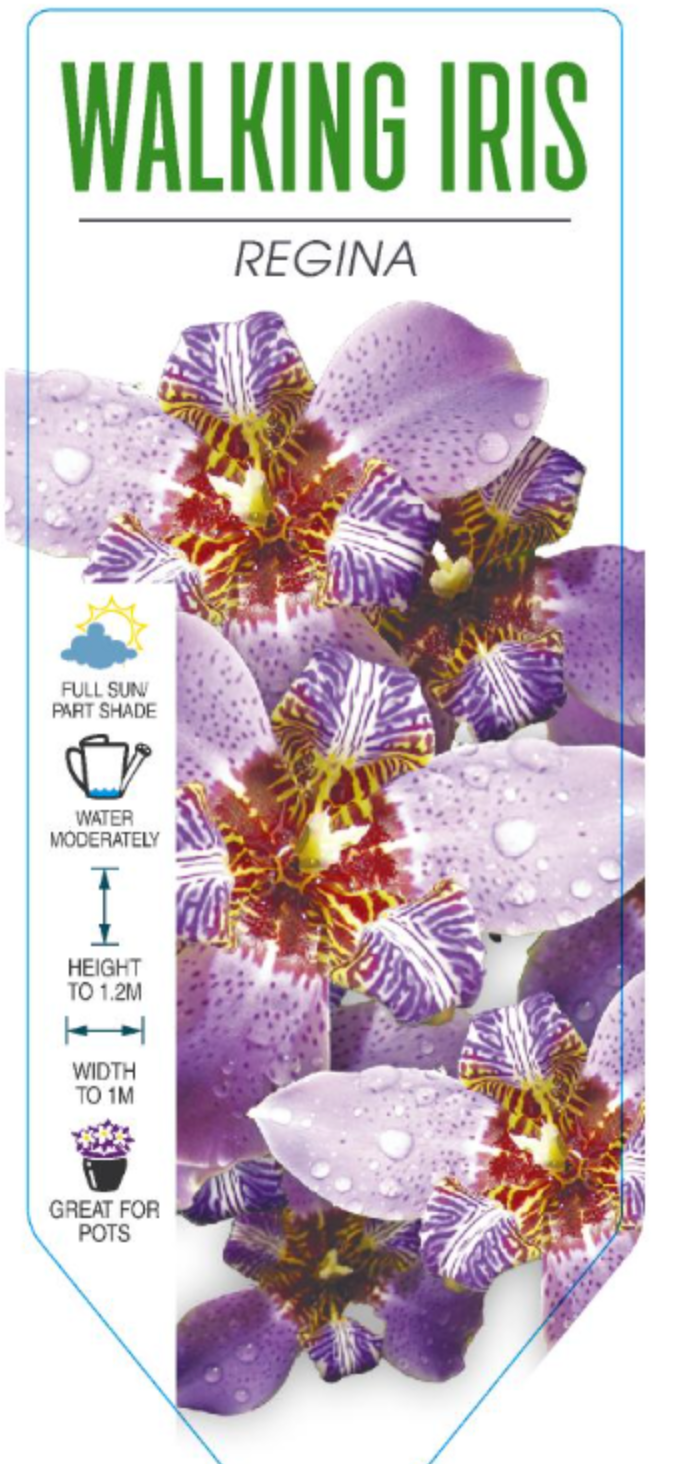 Neomarica caerulea "Regina" is also known as the Brazillian Walking Iris. It is commonly known as the Giant Walking Iris with its wide leaves and tall habit.
