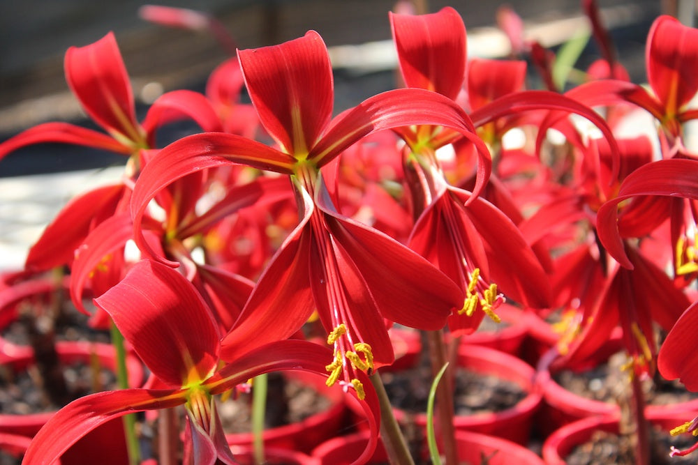 Sprekelia is a genus of at least three bulbous plants in the family Amaryllidaceae, subfamily Amaryllidoideae. They are native to Central America. This bulbous plant is known also as Saint James lily, Aztec lily, orchid lily, Mexican scarlet lily and Jacobean lily. The flower is about 130 mm across and brilliant scarlet or crimson. The flowers are like an orchid and stands on a stem about 300 mm above ground. Sprekelia aren’t too fussy about most soil types but prefer humus rich and slightly acid soils free draining. Sprekelia are drought tolerant bulbs. Plant in full sun. These immature bulbs represent great value and will be no less than 3cm across in size. Make a real impact by mass planting them.